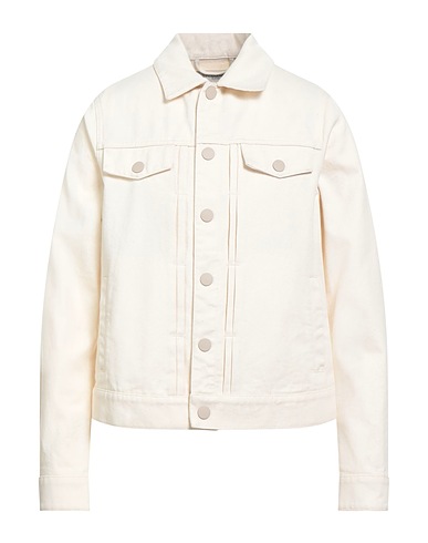 denim trucker jacket, denim, pleated, solid color, colored wash, classic collar, long sleeves, unlined, button fastenings, welt pockets, two chest pockets, machine wash or dry clean, do not bleach, tumble dry