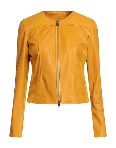 jacket, leather, jersey, no appliqués, solid color, crewneck, single-breasted , long sleeves, fully lined, zipper fastening, contains non-textile parts of animal origin, do not wash, do not bleach, do not tumble dry, do not iron, this brand runs small