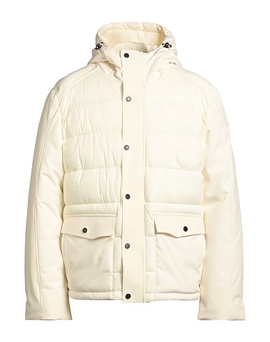 padded jacket, shell, stretchy fabric, brand logo, solid color, hooded, long sleeves, synthetic filling, heavyweight padding, zipper fastening, snap fastenings, flap pockets, machine wash, do not bleach, do not tumble dry