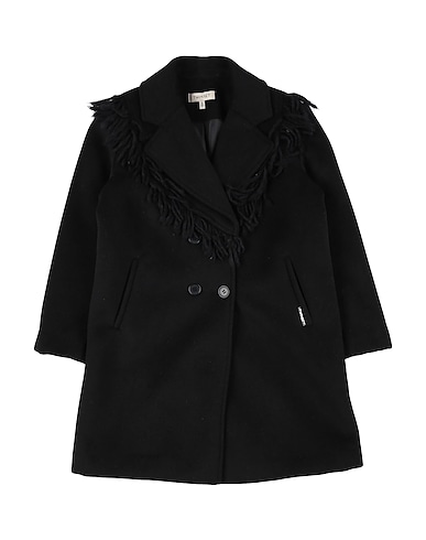 felt, fringes, brand logo, solid color with appliqués, lapel collar, double-breasted, long sleeves, fully lined, button fastenings, slit pockets, dry clean, do not bleach, do not tumble dry