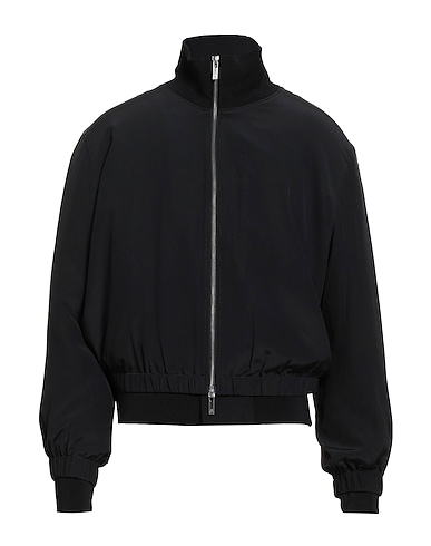 bomber jacket, crepe, solid color, knitted trims, long sleeves, removable padded lining, lightweight padding, zipper fastening, zipped pockets, dry clean, do not bleach, do not tumble dry