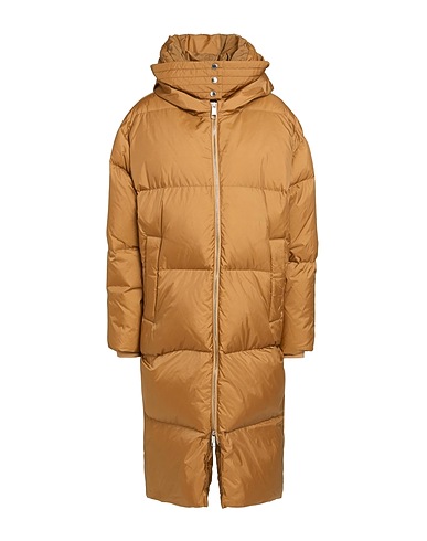 down coat, shell, brand logo, solid color, hooded, long sleeves, goose down interior, heavyweight padding, zipper fastening, zipper pocket, contains non-textile parts of animal origin, machine wash, do not bleach, tumble dry