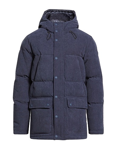 down jacket, corduroy, brand logo, solid color, hooded, long sleeves, duck down filling, lightweight padding, zipper fastening, snap fastenings, zipped pockets, flap pocket, contains non-textile parts of animal origin, machine wash, do not bleach, tumble dry
