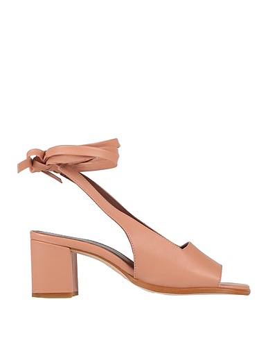 sandals, leather, solid color, no appliqués, leather lining, ties at ankle, round toe, square heel, rubber sole, contains non-textile parts of animal origin