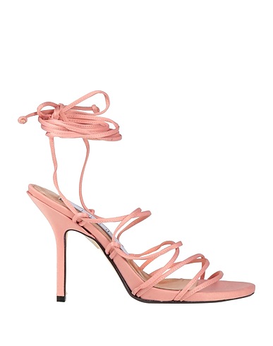 sandals, satin, solid color, no appliqués, leather lining, ties at ankle, round toe, spike heel, leather sole, contains non-textile parts of animal origin