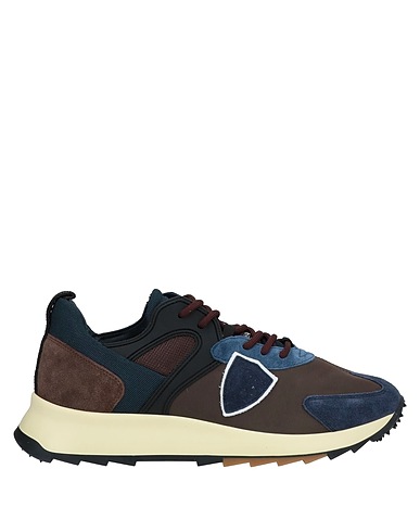 techno fabric, leather, brand logo, multicolor pattern, leather lining, laces, round toeline, flat, rubber cleated sole, contains non-textile parts of animal origin