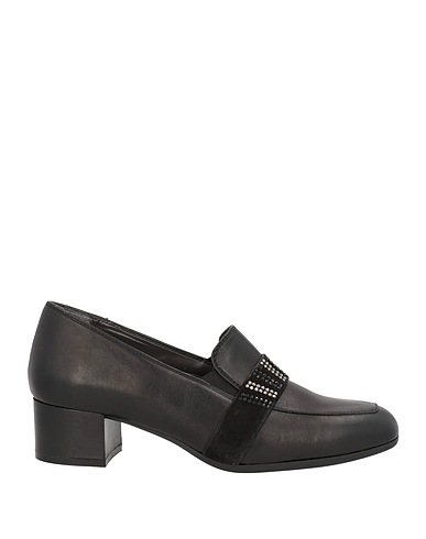 loafers, leather, suede, solid color with appliqués, crystals, leather lining, elasticized inserts, round toe, square heel, rubber sole, contains non-textile parts of animal origin