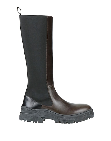 chunky boots, leather, solid color, no appliqués, fully lined, round toe, square heel, rubber sole, contains non-textile parts of animal origin