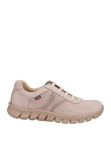 low-top sneakers, nubuck, solid color, brand logo, fully lined, elasticized inserts, round toe, rubber cleated sole, contains non-textile parts of animal origin