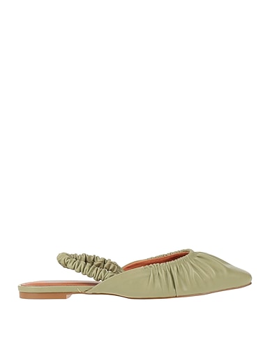 coated fabric, no appliqués, solid color, leather backing, elasticized straps, square toeline, flat, rubber sole, contains non-textile parts of animal origin, slingback ballet flats