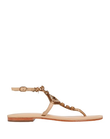 thong sandals, leather, solid color with appliqués, crystals, buckle-fastening ankle strap, round toe, flat, leather/rubber sole, leather lining, contains non-textile parts of animal origin