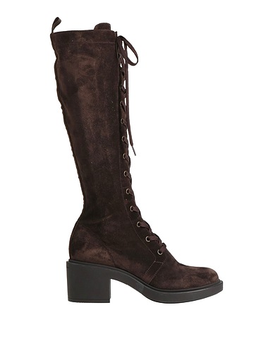 boots, suede, solid color, brand logo, lace-up, round toe, block heel, leather lining, rubber sole, contains non-textile parts of animal origin