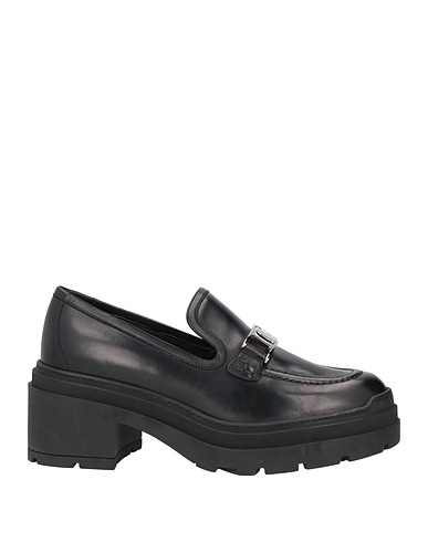 brand logo, metal applications, solid color, leather backing, round toeline, square heel, rubber cleated sole, contains non-textile parts of animal origin, chunky loafers