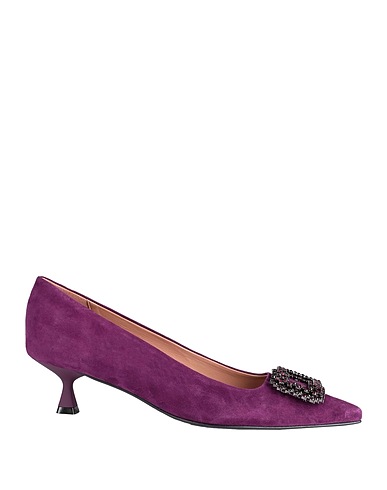 suede effect, rhinestones, solid color, leather backing, narrow toeline, spool heel, rubber sole, contains non-textile parts of animal origin, pumps