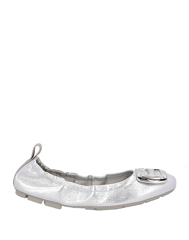 leather, laminated effect, brand logo, metal applications, solid colour with appliqués, fully lined, round toeline, flat, rubber cleated sole, contains non-textile parts of animal origin, ballet flats