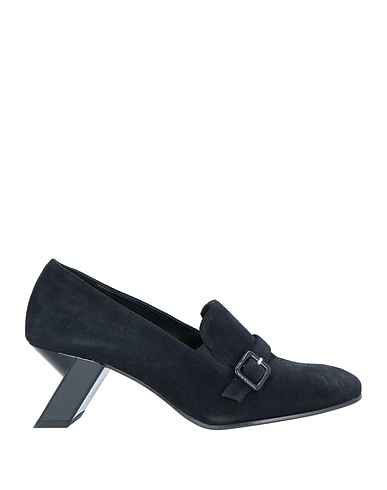 loafers, suede, solid color, strap detailing, leather lining, round toe, square heel, rubber sole, contains non-textile parts of animal origin