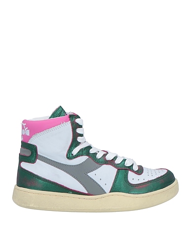 leather, laminated effect, brand logo, multicolor pattern, leather backing, laces, round toeline, flat, rubber cleated sole, contains non-textile parts of animal origin, high-tops & trainers