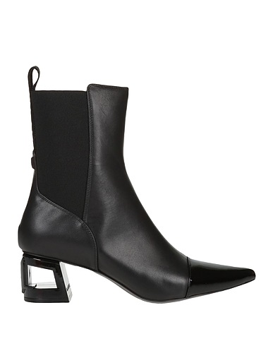 leather, varnished effect, brand logo, solid color, fully lined, narrow toeline, sculpted heel, rubber sole, contains non-textile parts of animal origin, chelsea boots