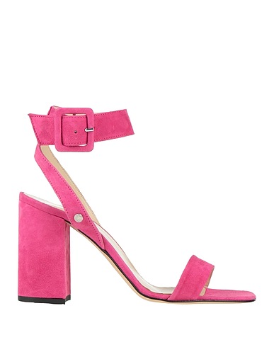 ankle strap sandals, suede, solid color, brand logo, leather lining, ties at ankle, square toe, square heel, rubber sole, contains non-textile parts of animal origin