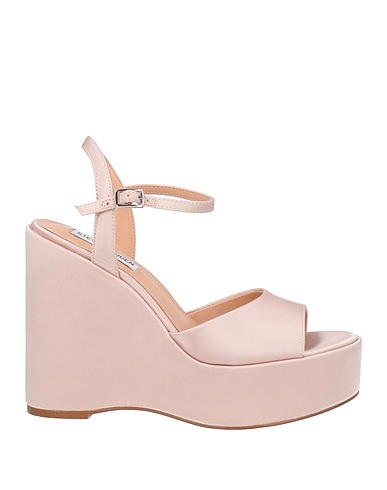 satin, no appliqués, solid color, fully lined, buckling ankle strap closure, round toeline, wedge heel, rubber sole, ankle strap sandals
