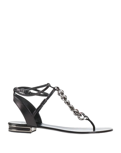 thong sandals, leather, solid color with appliqués, metal applications, buckle-fastening ankle strap, round toe, flat, leather sole, leather lining, contains non-textile parts of animal origin