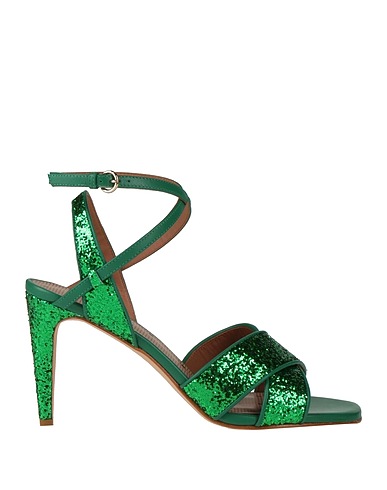 ankle strap sandals, leather, glittered, no appliqués, solid color with appliqués, rubber lining, buckle-fastening ankle strap, round toe, cone heel, covered heel, leather sole, contains non-textile parts of animal origin