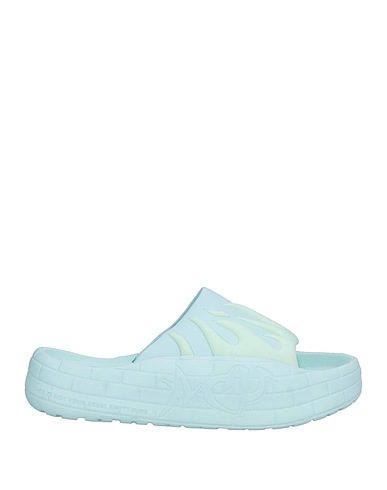 slide sandals, synthetic material, shell, solid color, no appliqués, unlined, round toe, flat, rubber sole