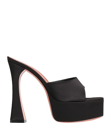 slide sandals, satin, solid color, platform, leather lining, round toe, spool heel, leather/rubber sole, contains non-textile parts of animal origin