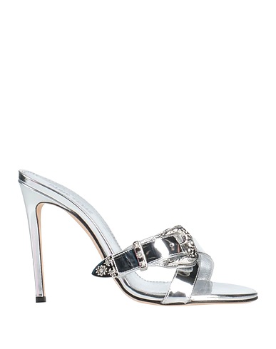 leather, metallic, buckle, solid color with appliqués, leather lining, round toe, stiletto heel, leather sole, contains non-textile parts of animal origin, sandals