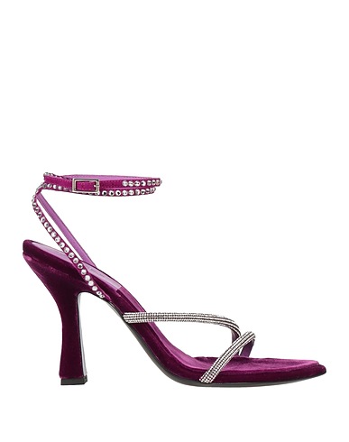 velvet, crystals, solid color, leather lining, ties at ankle, pointed toe, cone heel, covered heel, leather sole, contains non-textile parts of animal origin, ankle strap sandals