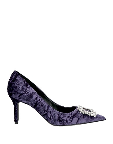 chenille, crystals, solid color with appliqués, leather lining, pointed toe, spike heel, rubber sole, contains non-textile parts of animal origin, stilettos