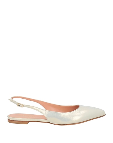leather, metallic, no appliqués, solid color, buckle fastening, pointed toe, flat, leather/rubber sole, contains non-textile parts of animal origin, slingback ballet flats, large sized
