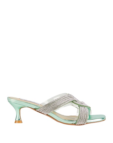 sandals, woven, crystals, solid color with appliqués, leather lining, square toe, spool heel, rubber sole, contains non-textile parts of animal origin