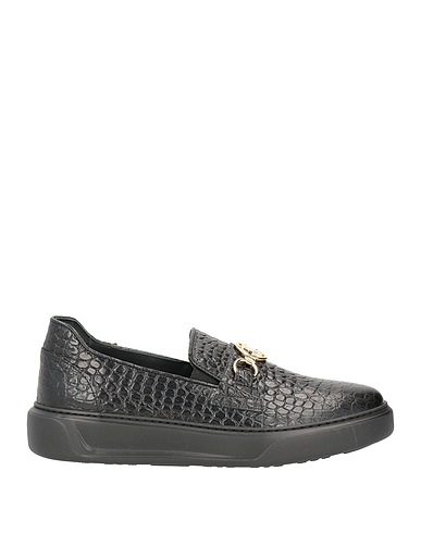 leather, brand logo, embellished, crocodile-print, solid color, leather lining, elasticized inserts, round toe, flat, rubber cleated sole, contains non-textile parts of animal origin, slip on