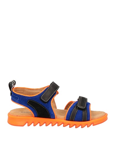 ankle strap sandals, leather, shell, brand logo, multicolor, leather lining, velcro fastening, round toe, flat, rubber cleated sole, contains non-textile parts of animal origin