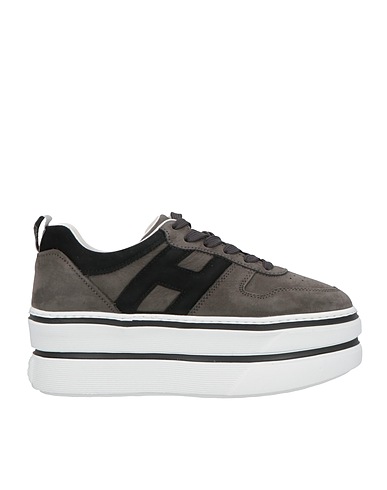 low-top sneakers, nubuck, suede, two-tone, brand logo, leather lining, lace-up, round toe, flat, flatform, contains non-textile parts of animal origin
