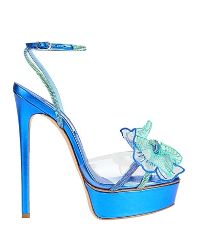 ankle strap sandals, plastic, solid color, crystals, floral appliqués, leather lining, buckle-fastening ankle strap, round toe, stiletto heel, covered heel, leather sole, contains non-textile parts of animal origin