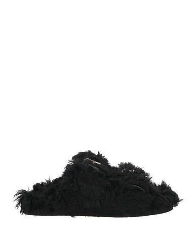 plush fabric, no appliqués, solid color, plush fabric inner, buckle fastening, round toe, flat, rubber sole, contains non-textile parts of animal origin, sandals