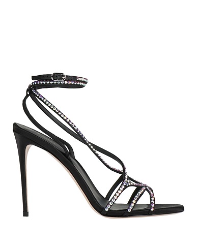 satin, crystals, solid color with appliqués, leather lining, lace-up, round toe, spike heel, covered heel, rubber sole, contains non-textile parts of animal origin, ankle strap sandals