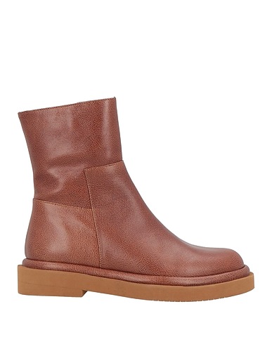 calf boots, leather, no appliqués, solid color, leather lining, zipper fastening, round toe, low heel, rubber sole, contains non-textile parts of animal origin