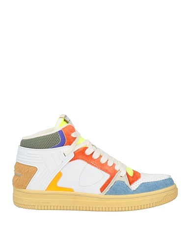 high-top sneakers, suede, denim, brand logo, multicolor, leather lining, lace-up, round toe, flat, rubber sole, contains non-textile parts of animal origin