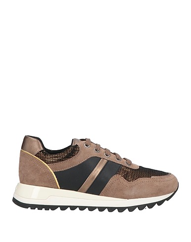 low-top sneakers, suede, coated fabric, brand logo, two-tone, leather lining, lace-up, round toe, flat, rubber cleated sole, contains non-textile parts of animal origin