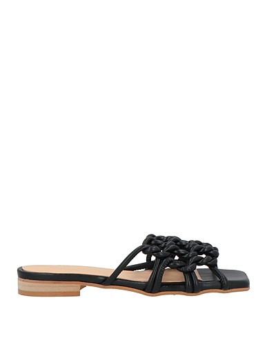 sandals, leather, solid color, no appliqués, leather lining, square toe, flat, leather sole, contains non-textile parts of animal origin