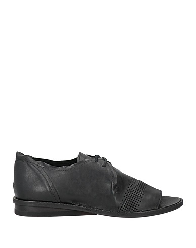 lace-up shoes, leather, solid color, no appliqués, leather lining, open toe, flat, leather sole, contains non-textile parts of animal origin