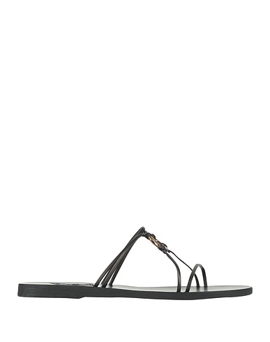 sandals, leather, solid color with appliqués, embellished, leather lining, round toe, flat, leather/rubber sole, contains non-textile parts of animal origin