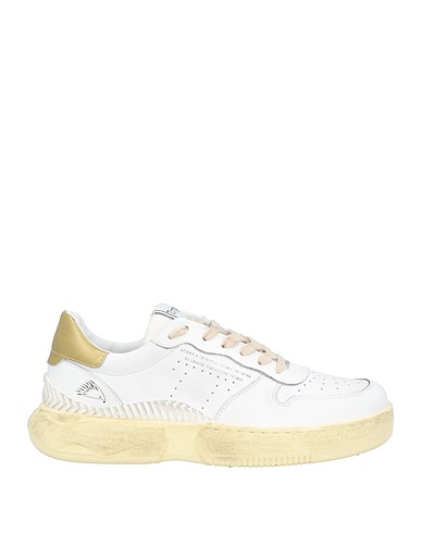 low-top sneakers, leather, distressed, metallic, solid color, brand logo, leather lining, lace-up, round toe, rubber cleated sole, contains non-textile parts of animal origin