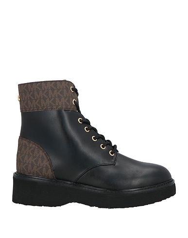 lace-up ankle boots, coated fabric, logo-print, no appliqués, leather lining, zipper fastening, round toe, square heel, rubber sole, contains non-textile parts of animal origin