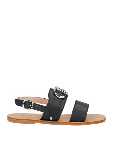 ankle strap sandals, leather, solid color with appliqués, brand logo, leather lining, buckle fastening, square toe, flat, rubber sole, contains non-textile parts of animal origin