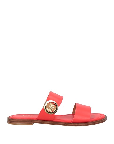 sandals, leather, solid color with appliqués, brand logo, embellished, leather lining, round toe, flat, leather sole, contains non-textile parts of animal origin