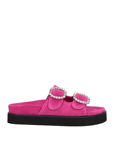 technical sandals, suede, solid color with appliqués, crystals, leather lining, round toe, flat, rubber sole, contains non-textile parts of animal origin